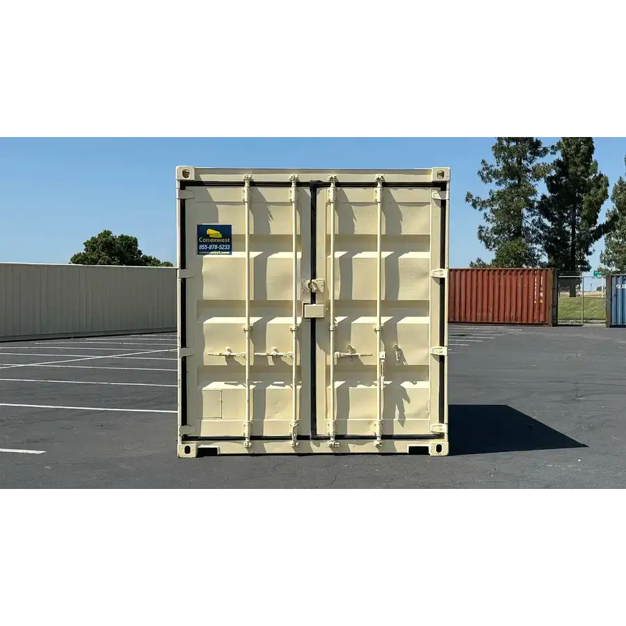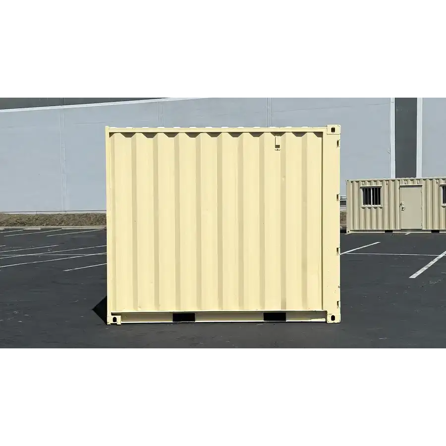 The 10ft refurbished container with cargo doors and lockbox is a secure, compact storage unit ideal for tight spaces, small job sites, or residential use. This unit is professionally refurbished with RAL 1015 Light Beige DTM paint, and comes equipped with traditional swing-out cargo doors and a welded steel lockbox for added security.