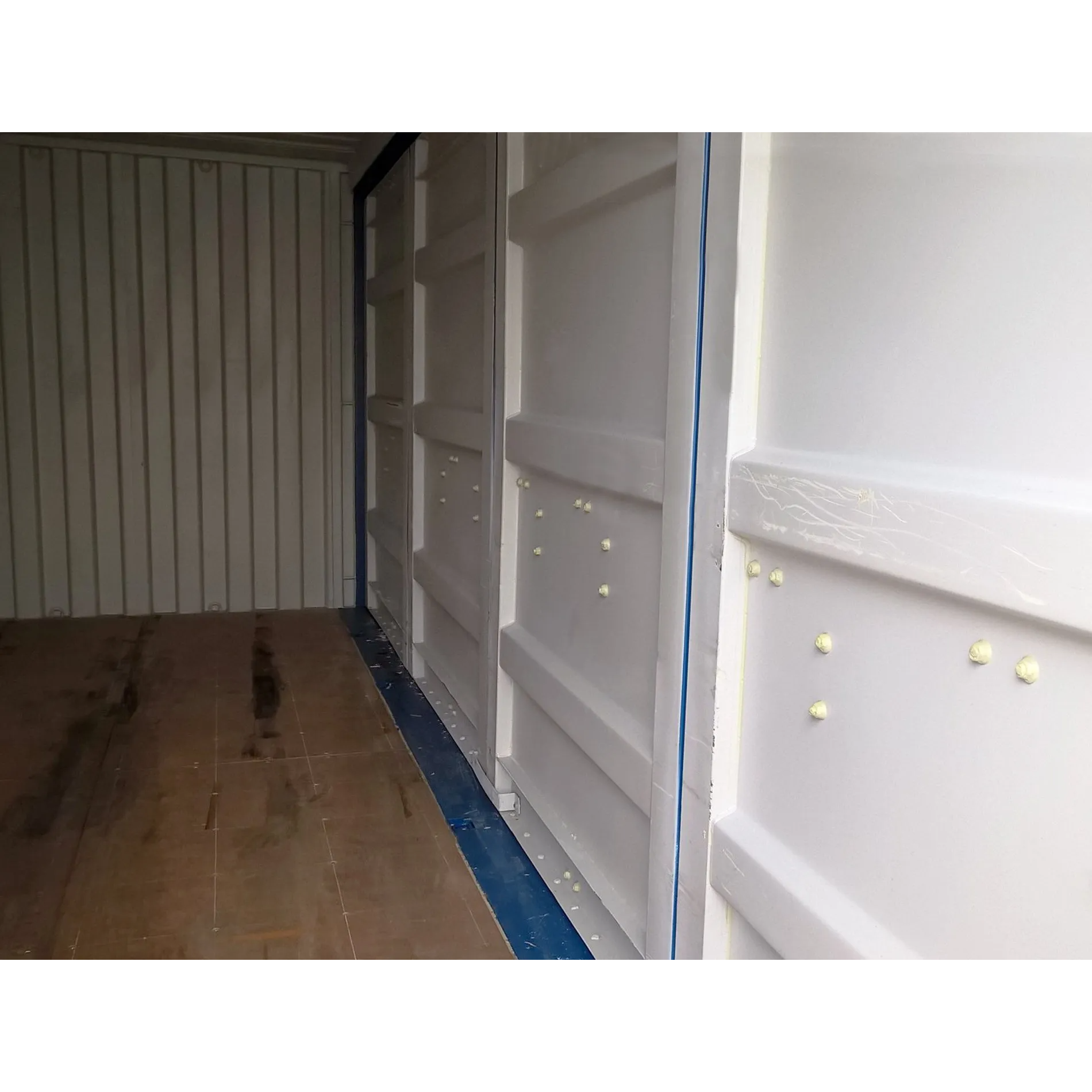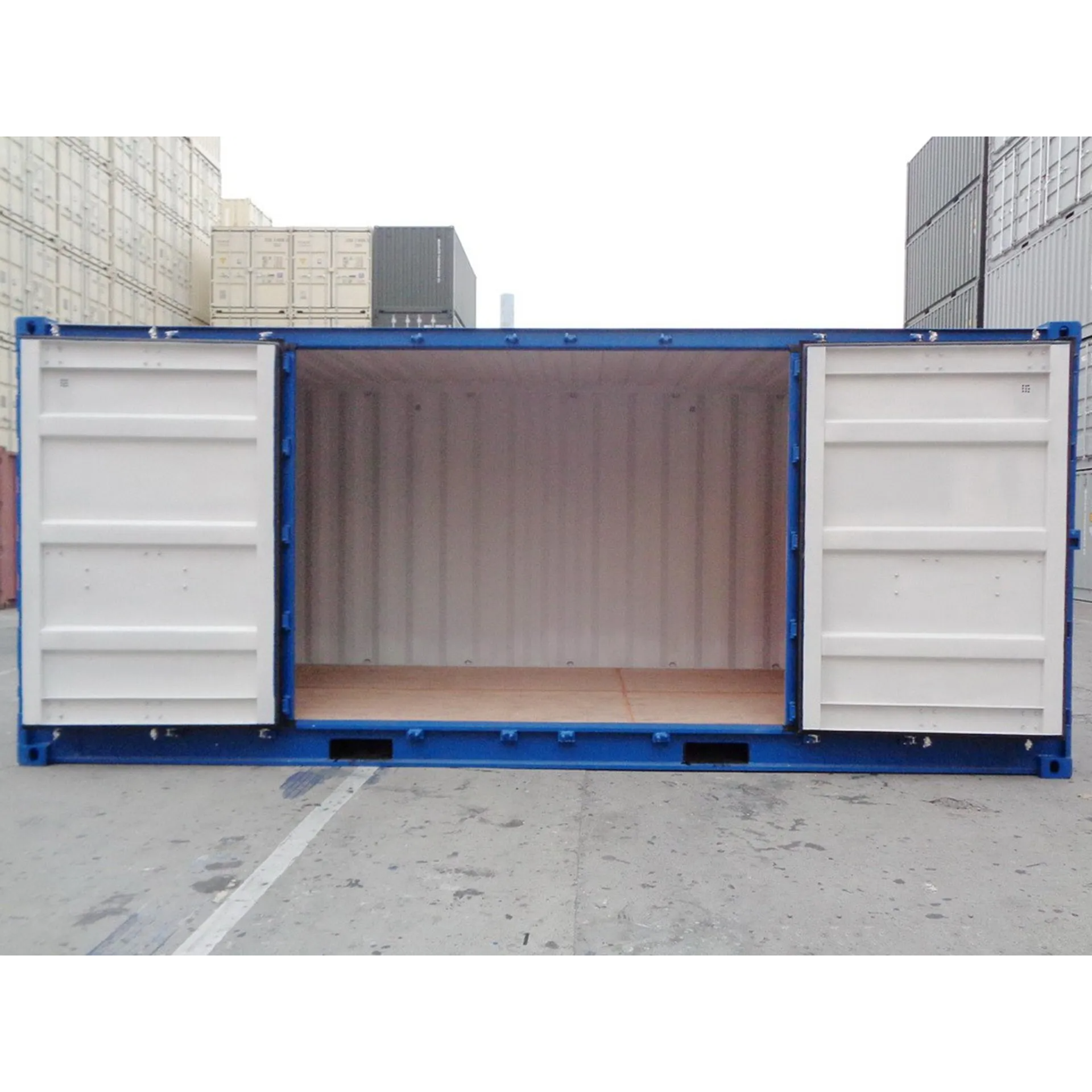 The 20’OS/20’FSA/20SD, more familiarly known as 6 m side opening container. This practical container differs from a traditional container due to its door structure. One long 6 m side of the container can be opened. The side door is usually a 4-leaf door that opens in 2 sections. 50% to the left and 50% to the right, allowing it to be opened in different ways, such as 1/4, 1/2 or completely. The 20′ Open Side Container is an ISO-compliant container that can be used for storage or freight (CSC). The floor material in the containers is plywood or bamboo and they come with standard ventilation valves. All doors are lockable with a padlock and our rental containers are equipped with a welded protective case.