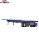 Our 3 Axle Low Flatbed Container Semi Trailer is engineered for strength and durability, capable of withstanding the demands of heavy container loads and challenging road conditions.