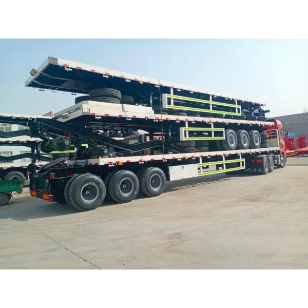 Our 40ft Flatbed Container Carrier Semi-Trailer is designed to be versatile and reliable, catering to a wide range of cargo hauling requirements.